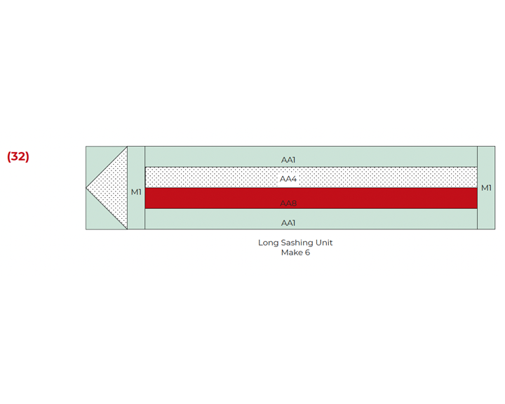 In early editions of the paper pattern, cutting instructions for Fabric 6 calls for (16) C squares. It actually should be (32). The yardage is listed correctly.