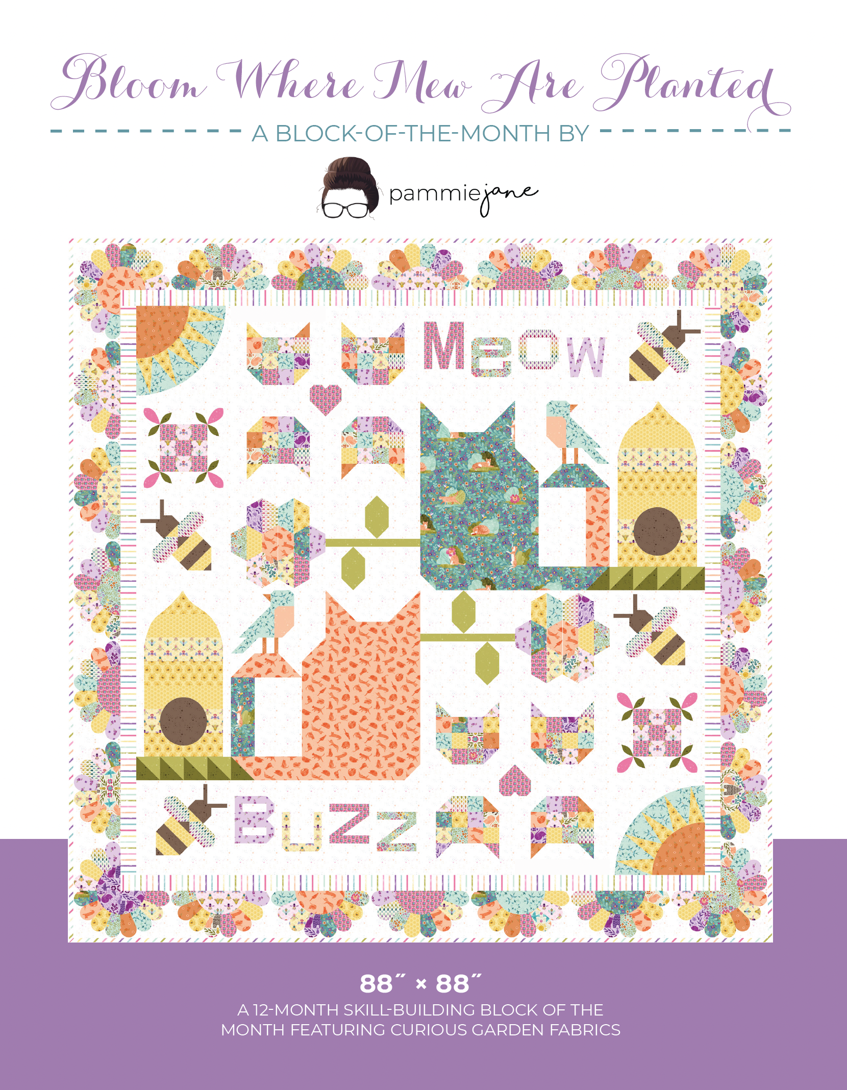 A 12-month skill-building block-of-the-month program, designed using the Curious Garden collection by Pammie Jane for Dear Stella fabrics.